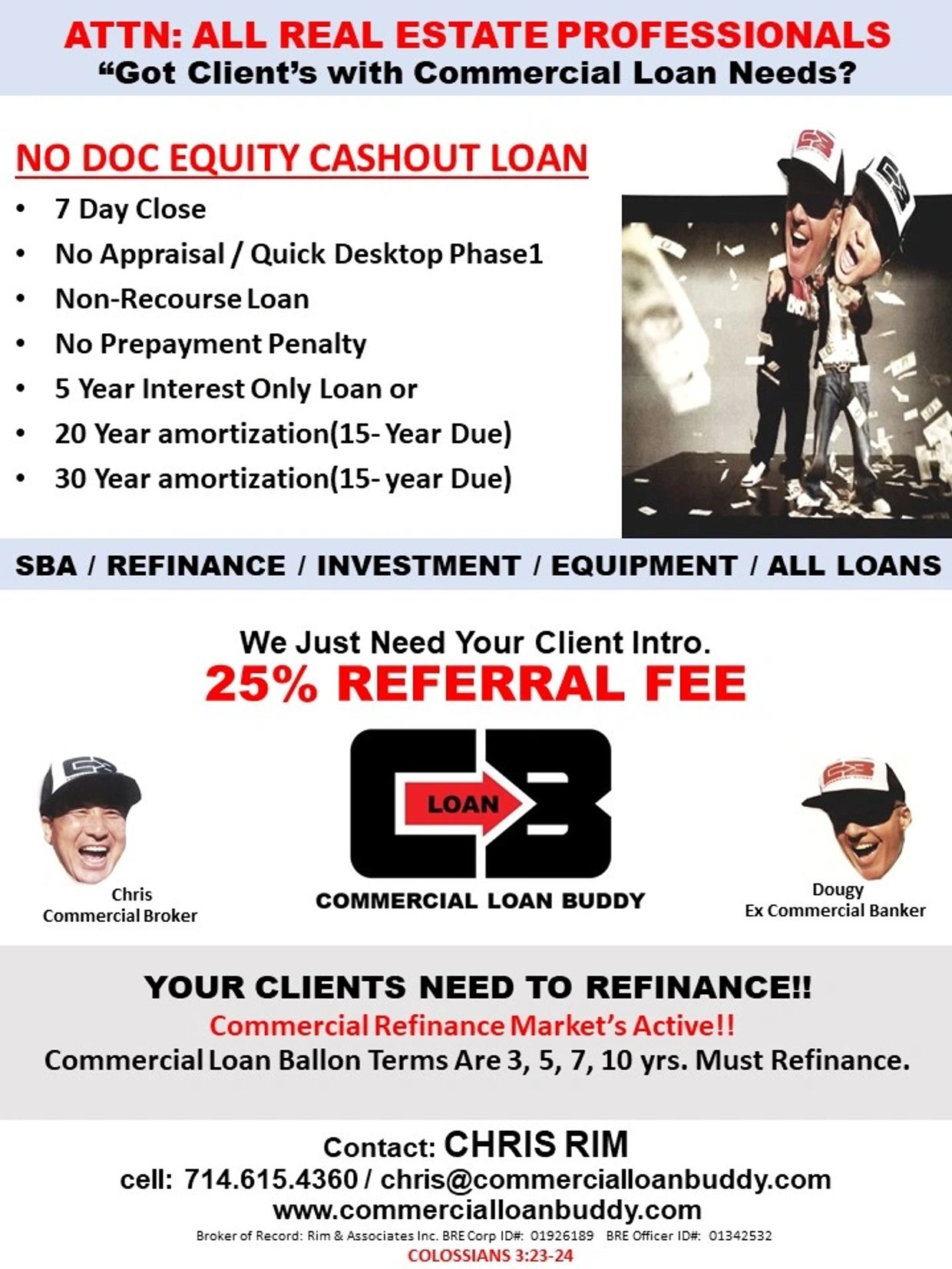 Our mission is to take care of everything for property owners or your client's commercial real estate loan needs from start to finish with integrity and 100% honesty by putting our client's best interest first at all times.